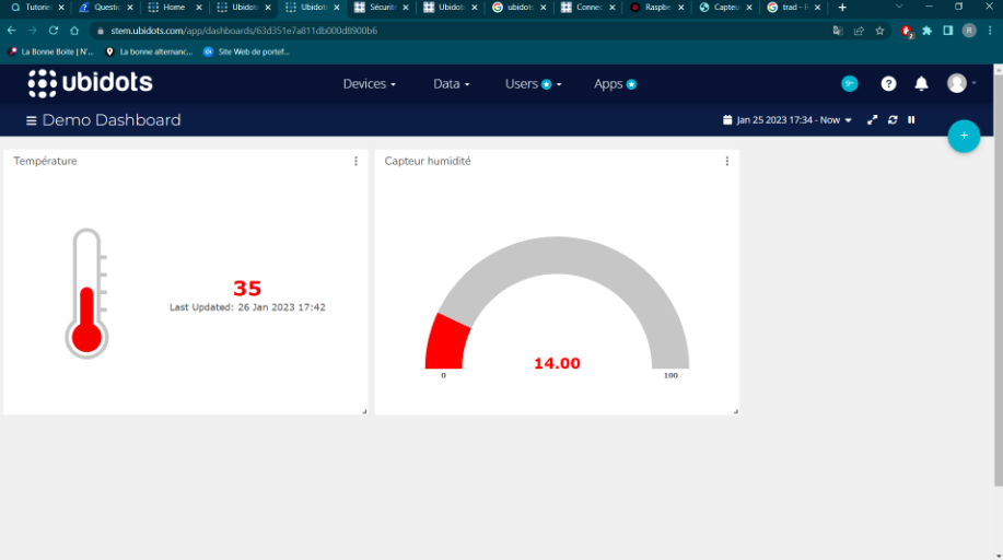 Durant cette SAÉ nous serons amené à configurer et manipuler un carte Raspberry PI pour effectuer des mesure à l'aide de capteur connecter à celle ci. Nous avons fait des mesure, de température et d'humidité dans une salle, à l'aide du logiciel "Ubidots".